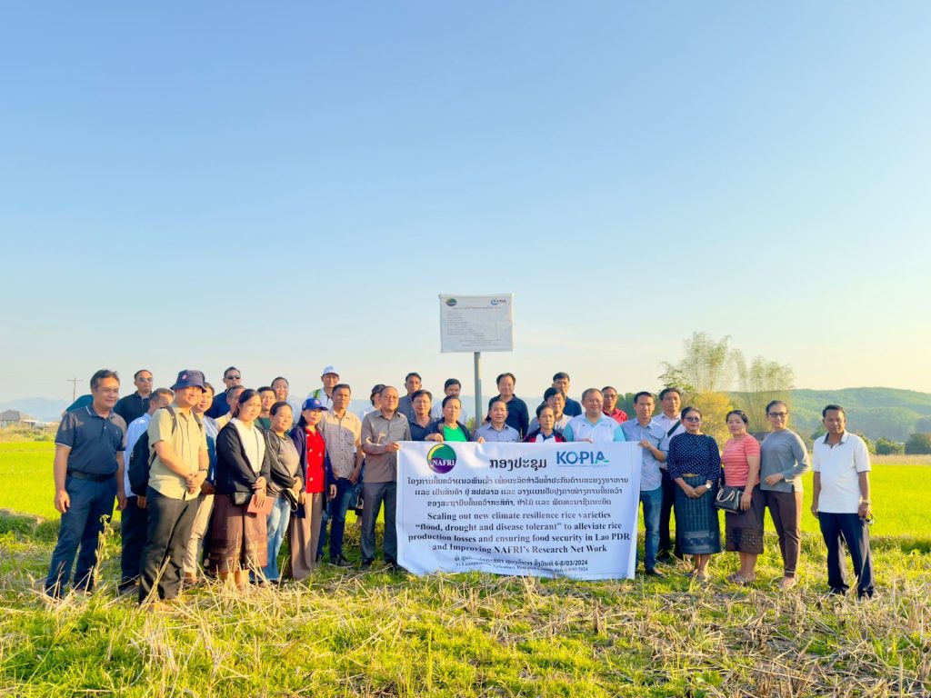 ໃນວັນທີ 7 ມີນາ 2024 ຢູ່ທີ ສູນຄົ້ນຄວ້າກະສິກຳ ຫຼວງນໍ້າທາ ທີຂື້ນກັບ ສະຖາບັນຄົ້ນຄວ້າ ກະສິກຳ, ປ່າໄມ້ ແລະ ພັດທະນາຊົນນະບົດໄດ້ຈັດກອງປະຊຸມ ຂອງໂຄງການຄົ້ນຄວ້າແນວພັນເຂົ້າ ເພື່ອຜະລິດສຳລັບ ຄໍ້າປະກັນສະບຽງອາຫານ ແລະ ເປັນສິນຄ້າ ແລະວາງແຜນປັບປຸງຕາງໜ່າງການຄົ້ນຄວ້າ ຂອງສະຖາບັນຄົ້ນຄວ້າກະສິກຳປ່າໄມ້ ແລະ ພັດທະນາຊົນນະບົດ, ຈຸດປະສົງຂອງກອງປະຊຸມ ກໍ່ເພື່ອເປັນການຍົກລະດັບ ແລະ ປັບປຸງວຽກງານການຄົ້ນຄວ້າແນວພັນເພືອຕອບສະໜອງໃຫ້ແກ່ ການຄໍ້າປະກັນສະບ່ຽງອາຫານ ແລະກ້າວໄປສູ່ການຜະລິດເປັນສິນຄ້າ, ໃນນີ້້ ສະຖາບັນຄົ້ນຄວ້າກະສິກຳ,ປ່າໄມ້ ແລະພັດທະນາຊົນນະບົດ ໂດຍການສະໜັບສະໜູນທາງດ້ານວິຊາການ ແລະ ງົບປະມານ ຈາກ ແຜນງານກະສິກຳ ສາກົນປະຈຳລາວ ແຫ່ງປະເທດເກົາຫຼີ (KOPIA) ໄດ້ຮ່ວມກັນຈັດຕັ້ງປະຕິບັດ ໂຄງການຄົ້ນຄວ້າແນວພັນເຂົ້າເພື່ອຄໍ້າປະກັນສະບ່ຽງອາຫານ ແລະ ເປັນສິນຄ້າ ຊຶງຜ່ານມາໃນໄລຍະເວລາ 3ປີ ສາມາດປັບປຸງແນວພັນເຂົ້າໃຫມ່ (ຫຼວງນໍ້າທາ 2) ອອກສູ່ສັງຄົມ ຊຶງເປັນແນວພັນທີທີຄຸນລະສະນະສະເພາະ ແລະ ສາມາດປັບຕົວຕໍ່ກັບການປ່ຽນແປງຂອງສະພາບດີນຟ້າອາກາດ. ກອງປະຊຸມດັ່ງກ່າວ ໄດ້ມີການຕິລາຄາຜົນງານ ແລະ ຖອດຖອນບົດຮຽນຂອງການຈັດຕັ້ງປະຕິບັດໂຄງການ ໃນໄລຍະຜ່ານມາ ເພື່ອວາງແຜນໃນການກະກຽມຈັດຕັ້ງປະຕິບັດໂຄງການໃນຕໍ່ໜ້າ ແລະ ໃນໂອກາດນີ້ກໍ່ເປັນການປຶກສາຫາຫລືຕໍ່ກັບບັນດາ ຂະແໜງການທ້ອງຖິ່ນໃນການປັບປຸງວຽກງານຕາງໜາງການຄົ້ນຄວ້າ ລະຫວາງສູນກາງ ແລະ ທ້ອງຖິ່ນໃຫ້ມີປະສິດທີພາບຂື້ນກວ່າເກົ່າ.