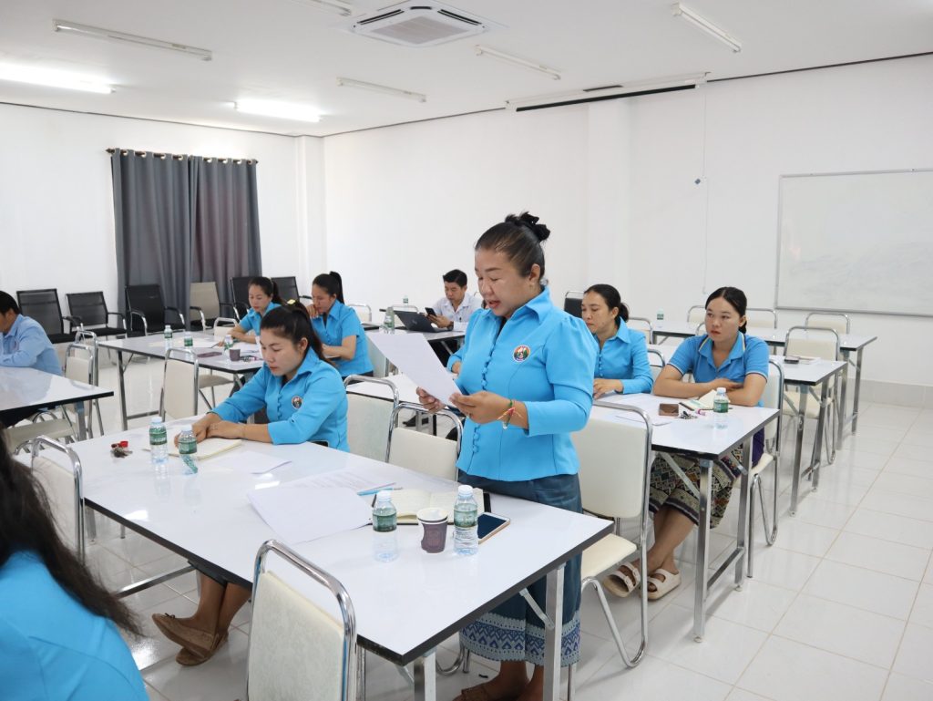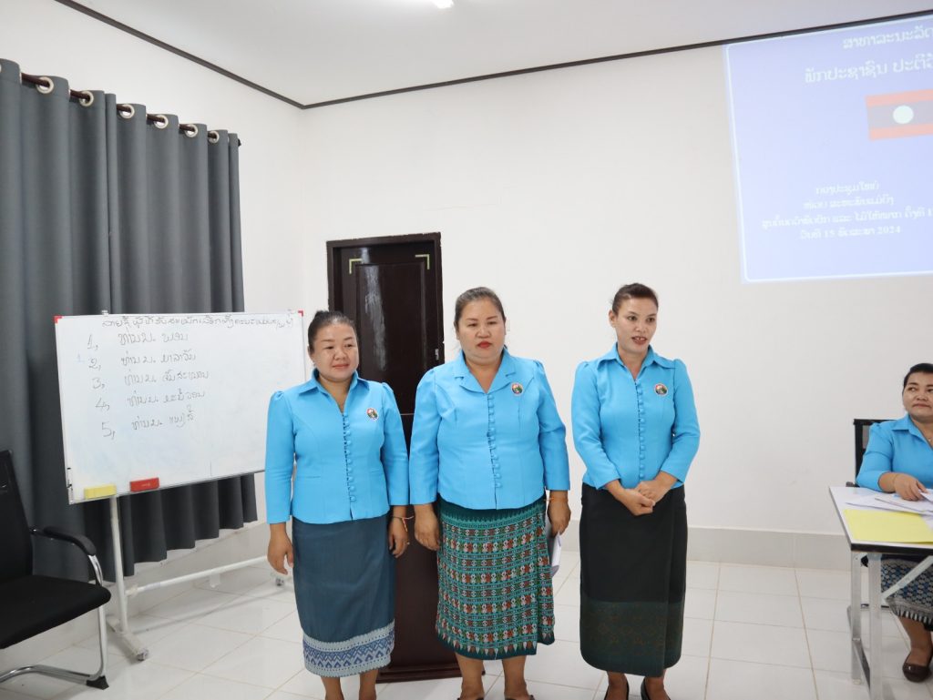 ໃນຕອນເຊົ້າ ເວລາ 8:30 ຂອງວັນທີ 15 ພືດສະພາ 2024 ທີ່ຜ່ານມາ ຢູ່ທີ່ຫ້ອງປະຊຸມ ສູນຄົ້ນຄວ້າພືດຜັກ ແລະ ໄມ້ໃຫ້ໝາກ ໄດ້ຈັດກອງປະຊຸມໃຫ່ຍຄັ້ງທີ່ III ວ່າດ້ວຍ ການເລືອກຕັ້ງຄະນະໜ່ວຍຊຸດໃໝ່ຂອງໜ່ວຍ ສະຫະພັນແມ່ຍິງ ສູນຄົ້ນຄວ້າພືດຜັກ ແລະ ໄມ້ໃຫ້ໝາກ ແລະ ທິດທາງແຜນການ 5 ປີ ໃນຕໍ່ໜ້າ ປີ (2024-2028) ໂດຍການເປັນປະທ່ານຂອງ ທ່ານໄພທູນ ມູນເສນາ ຮອງເລຂາ ສູນຄົ້ນຄວ້າພືດຜັກ ແລະ ໄມ້ໃຫ້ໝາກ ແລະ ທ່ານ ນ. ພິລາວັນ ບຸນສະວັດ ຄະນະຮາກຖານ ສະຫະພັນແມ່ຍິງ ສະຖາບັນຄົ້ນຄວ້າກະສິກຳ, ປ່າໄມ້ ແລະ ພັດທະນາຊົນນະບົດ ເຊິ່ງມີຜູ້ເຂົ້າຮ່ວມກອງປະຊຸມຄັ້ງນີ້ຈໍານວນທັງໝົດ 15 ທ່ານ, ໃນນັ້ນເປັນສະມາຊິກສະຫະພັນຍິງຈໍານວນ 9 ທ່ານ ມີສິດປ່ອນບັດເລືອກຕັ້ງທັງໝົດ 9 ທ່ານ