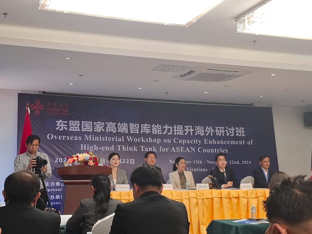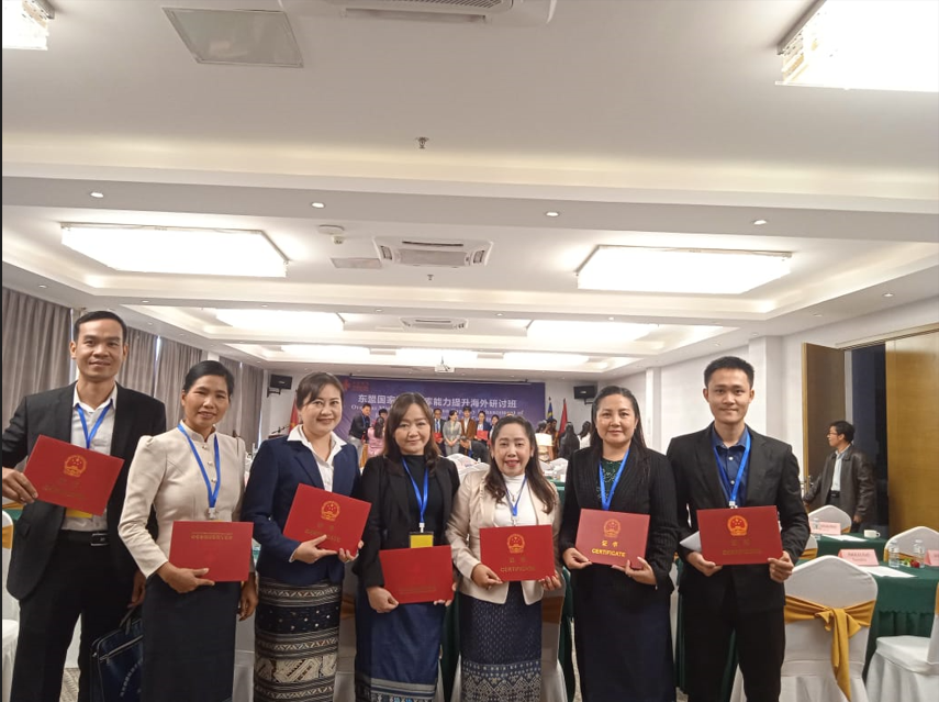 ກອງປະຊຸມແລກປ່ຽນຄວາມຮູ້ການຍົກຂີດຄວາມສາມາດ, ຄັງປັນຍາລະດັບສູງ ສຳລັບບັນດາປະເທດອາຊ່ຽນ, ໂດຍໄດ້ຮັບການສະໜັບສະໜູນທືນຈາກ ວິທະຍາໄລອາຊີບການຄ້າຕ່າງປະເທດ ຫູໜານ ສປປ ຈີນ ເຊິ່ງຈັດຂຶ້ນຢູທີ່ໂຮງແຮມໂປລີ ນະຄອນຫລວງວຽງຈັນ ສປປ ລາວ ໃນລະຫວ່າງວັນທີ່ 13-22 / 11/2024, ພາຍໃຕ້ການເປັນປະທານຮ່ວມລະຫວ່າງ ທ່ານ ຍັງລີຫູ ຜູ້ອຳນວຍການຫ້ອງການການເງິນ, ວິທະຍາໄລອາຊີບການຄ້າຕ່າງປະເທດ ຫູໜານ ແລະ ທ່ານ ນາງ ພັນຈິດ ຫົວໜ້າຫ້ອງການຮ່ວມມືລາວຈີນ, ມີແຂກຖືກເຊີນ ຈາກປະເທດ ຫວຽດນາມ,ມາເລເຊຍ ແລະ ສ ປປ ລາວ ກໍ່ມີຫລາຍພາກສ່ວນເຊັ່ນ; ສູນກາງພັກ, ສູນກາງແນວລາວສ້າງຊາດ, ສະຖາບັນການເມືອງ ແລະ ການປົກຄອງແຫ່ງຊາດ, ກະຊວງແຜນການ ແລະ ການລົງທືນ, ສູນກາງສະຫະພັນແມ່ຍິງລາວ ແລະ ກະຊວງກະສິກຳ ແລະ ປ່າໄມ້ເຊັ່ນ: ກົມປູກຝັ່ງ, ກົມແຜນການ ແລະ ການຮ່ວມມື, ກົມສົ່ງເສີມກະສິກຳ ແລະ ສະຫະກອນ, ສະຖາບັນຄົ້ນຄົ້ນຄວ້າກະສິກຳປ່າໄມ້, ແລະ ພັດທະນາຊົນນະບົດ, ມະຫາວິທະຍາໄລສຸພານຸວົງ, ມະຫາວິທະຍາໄລສະຫວັນນະເຂດ, ມະຫາວິທະຍາໄລຈຳປາສັກ ລວມທັງໝົດ 81 ທ່ານ ຍິງ 35 ທ່ານ.