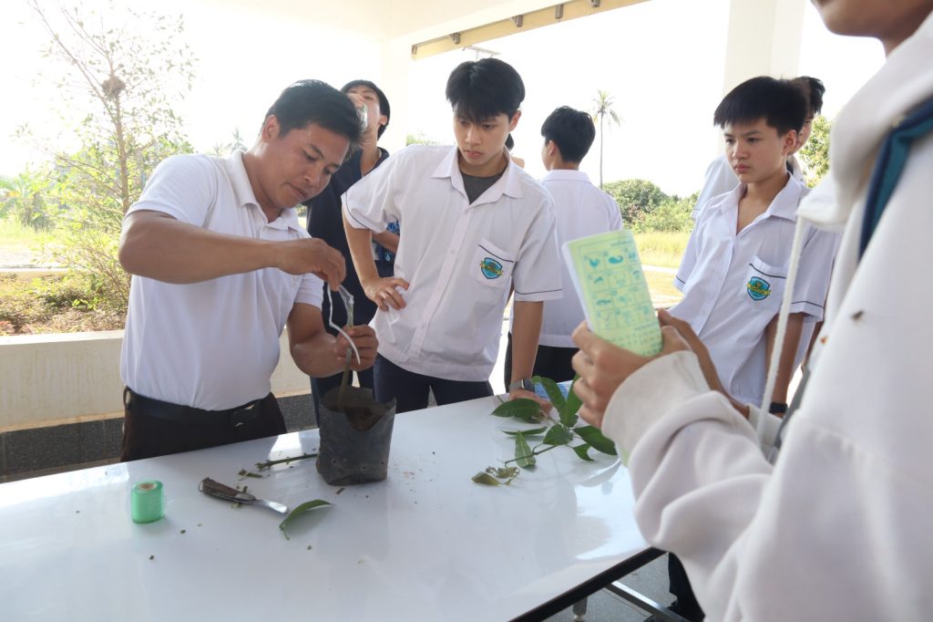 ການທັດສະນະສຶກສາ ແລະ ແລກປ່ຽນບົດຮຽນພາກສະໜາມ ຂອງນັກຮຽນຈາກໂຮງຮຽນ ຮາກແກ້ວ ໃນຄັ້ງນີ້ ທ່ານຫົວໜ້າ ສູນຄົ້ນຄວ້າພືດຜັກ ແລະ ໄມ້ໃຫ້ໝາກ ໄດ້ເລີ່ມລາຍງານຜົນສໍາເລັດຂອງການຈັດຕັ້ງປະຕິບັດ ຂອງສູນເຊັ່ນ: ການສໍາຫຼວດ ແລະ ເຕົ້າໂຮມແນວພັນພືດຜັກ ແລະ ໄມ້ໃຫ້ໝາກ ພັນພື້ນເມືອງຂອງລາວ ແລະ ບັນດາກິດຈະກໍາການຄົ້ນຄວ້າທົດລອງຂອງສູນ ໂດຍສະເພາະການຄົ້ນຄວ້າທາງດ້ານເຕັກນິກການປູກ, ການຄົ້ນຄວ້າທາງດ້ານແນວພັນ ແລະ ການຂະຫຍາຍພັນພືດຜັກ ແລະ ໄມ້ໃຫ້ໝາກ ພ້ອມທັງເຕັກນິກການປ້ອງກັນພືດ ແລະ ເຕັກນິກຫຼັງການເກັບກ່ຽວ; ເຊິ່ງໄດ້ເນັ້ນໃສ່ວຽກງານການຄົ້ນຄວ້າທີ່ກ່ຽວຂ້ອງຕໍ່ກັບສະພາບການປ່ຽນແປງຫິນຟ້າອາກາດ ຈາກນັ້ນ, ກໍ່ລົງຢ້ຽມຢາມເບິ່ງພື້ນທີ່ການຜະລິດເມັດພັນ ແລະ ເຕັກນິກຕ່າງໆ ທີ່ໃຊ້ເຂົ້າໃນການຜະລິດ ໂດຍສະເພາະກິດຈະກໍາທີ່ສາມາດປັບຕົວເຂົ້າກັບສະພາບການປ່ຽນແປງຂອງດິນຟ້າອາກາດ ເຊັ່ນ: ເຕັກນິກການກ້າເບ້ຍ, ການຈັດການການໃຫ້ນໍ້າແກ່ພືດຜັກ, ການປູກຜັກໃນລະບົບເຮືອນຮົ່ມທີ່ເໝາະສົມໃນສະພາບເງື່ອນໄຂຂອງລາວ, ການຂະຫຍາຍພັນໄມ້ໃຫ້ໝາກ ແລະ ການເກັບຮັກສາເມັດພັນພືດຜັກ. ໃນການຢ້ຽມຢາມ ແລະ ແລກປ່ຽນບົດຮຽນພາກສະໜາມໃນຄັ້ງນີ້ ໄດ້ເຮັດໃຫ້ຜູ້ເຂົ້າຮ່ວມສາມາດຖອດຖອນ ແລະ ແລກປ່ຽນບົດຮຽນທາງດ້ານການຜະລິດພືດຜັກ ແລະ ໄມ້ໃຫ້ໝາກ ເຊັ່ນ: ການສໍາຫຼວດ ແລະ ເຕົ້າໂຮມແນວພັນພືດຜັກພື້ນເມືອງຂອງລາວ, ການອະນຸລັກແຫຼ່ງເຊື້ອພັນພືດຜັກ, ການທົດສອບ ແລະ ຄັດເລືອກສາຍພັນພືດຜັກທີ່ເໝາະສົມໃນສະພາບແວດລ້ອມຂອງລາວ, ການຜະລິດເມັດພັນພືດຜັກຮ່ວມກັບຊາວກະສິກອນ, ເຕັກນິກການປູກຜັກໃນເຮືອນຮົ່ມ, ເຕັກນິກການຂະຫຍາຍພັນໄມ້ໃຫ້ໝາກ, ເຕັກນິກການປ້ອງກັນພືດ ແລະ ການຈັດການຫຼັງການເກັບກ່ຽວ ເຊິ່ງຜູ້ເຂົ້າຮ່ວມຕ່າງກໍ່ໃຫ້ຄວາມສົນໃຈ ແລະ ໃຫ້ຄວາມສໍາຄັນ ໂດຍການສັກຖາມແລກປ່ຽນກັນ ຢ່າງເປັນຂະບວນຟົດຟື້ນ.