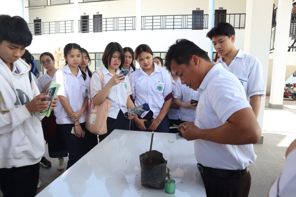 ໃນຕອນເຊົ້າຂອງວັນທີ 4/12/2024 ທີ່ຜ່ານມານີ້ ທີ່ສູນຄົ້ນຄວ້າພືດຜັກ ແລະ ໄມ້ໃຫ້ໝາກ (ສຜໝ) ໄດ້ຮັບກຽດຕ້ອນຮັບອາຈານ ແລະ ນັກຮຽນ ຈາກໂຮງຮຽນ ຮາກແກ້ວ ຈໍານວນ 36 ຄົນ ເປັນຍິງ 20 ຄົນ ທີ່ລົງມາທັດສະນະສຶກສາ ແລະ ແລກປ່ຽນບົດຮຽນພາກສະໜາມ ໂດຍການຕ້ອນຮັບຢ່າງອົບອຸ່ນ ແລະ ເປັນກັນເອງ ຂອງທ່ານ ປອ ທອງຄູນ ສີສະໄພທອງ ຫົວໜ້າສູນຄົ້ນຄວ້າພືດຜັກ ແລະ ໄມ້ໃຫ້ໝາກ ພ້ອມດ້ວຍນັກວິຊາການຂອງສູນຄົ້ນຄວ້າພືດຜັກ ແລະ ໄມ້ໃຫ້ໝາກຈໍານວນໜຶ່ງເຂົ້າຮ່ວມ. ຈຸດປະສົງ: 1). ເພື່ອແລກປ່ຽນ ແລະ ຖ່າຍທອດບົດຮຽນ ທາງດ້ານຜົນສໍາເລັດຂອງການຈັດຕັ້ງປະຕິບັດການຄົ້ນຄວ້າທົດລອງ ໂດຍສະເພາະການຄົ້ນຄວ້າທາງດ້ານການປັບຕົວເຂົ້າກັບການປ່ຽນແປງດິນຟ້າອາກາດຂອງການຜະລິດພືດຜັກ ແລະ ເຕັກນິກການຂະຫຍາຍພັນໄມ້ໃຫ້ໝາກ ພ້ອມທັງການແປຮູບຜະລິດຕະພັນກະສິກໍາ.
