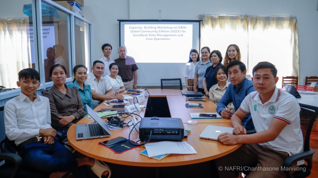ໃນລະຫວ່າງວັນທີ 5 ພຶດສະພາ 2025 ທີ່ສູນຄົ້ນຄວ້າເຂົ້າ ແລະ ພືດເສດຖະກິດ ໄດ້ຈັດຝຶກອົບຮົມ ໃນຫົວຂໍ້: ການສ້າງຄວາມອາດສາມາດກ່ຽວກັບ GRIN-Global Community Edition (GGCE) ສໍາລັບການຄຸ້ມຄອງຂໍ້ມູນຂອງທະນາຄານເຊື້ອພັນ ຫຼື Genebank ແລະ ການປະຕິບັດງານຫຼັກ. ໃຫ້ກຽດເປັນປະທານໂດຍ ທ່ານ ປອ. ສີວຽງແຂກ ພົມມະລາດ ຫົວໜ້າສູນຄົ້ນຄວ້າເຂົ້າ ແລະ ພືດເສດຖະກິດ (ນາພອກ), ສະຖາບັນຄົ້ນຄວ້າກະສິກຳ, ປ່າໄມ້ ແລະ ພັດທະນາຊົນນະບົດ, ຊຶ່ງມີ ທ່ານ ປອ ກູ່ຄຳ ຫົວໜ້າກຸ່ມວຽກທະນາຄານເຊື້ອພັນ (Genebank) ພ້ອມດ້ວຍນັກສຳມະນາກອນມາຈາກກຸ່ມວຽກທະນາຄານເຊື້ອພັນ (Genebank) ທັງໝົດ 9 ທ່ານ ຍິງ 4 ທ່ານ ເຂົ້າຮ່ວມ, ໂດຍການເປັນຄູຝຶກ ຂອງຊ່ຽວຊານທີ່ມາຈາກປະເທດນໍເວ.