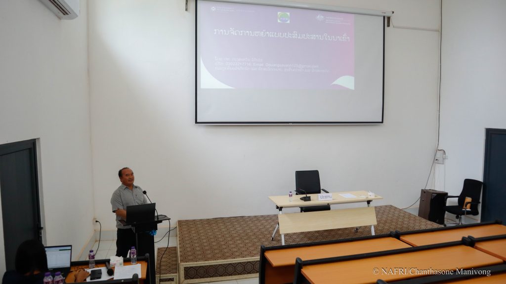 ທ່ານ ສຸລິວົງ ໄຊຍະວົງ ໄດ້ກ່າວໃນກອງປະຊຸມວ່າ:ສະຖາບັນຄົ້ນຄວ້າກະສິກຳ, ປ່າໄມ້ ແລະ ພັດທະນາຊົນນະບົດ ແລະ ສູນຄົ້ນຄວ້າເຂົ້າ ແລະ ພືດເສດຖະກິດຮ່ວມກັບໂຄງການເອຊີອາ (ACIAR) ໄດ້ຮວ່ມກັນເຮັດການຄົ້ນຄວ້າໂດຍເນັ້ນໃສ່ການແກ້ໄຂສິ່ງທ້າທາຍໃນການຜະລິດເຂົ້າ ເພື່ອສຸມໃສ່ການຄ້ຳປະກັນສະບຽງອາຫານ ແລະ ເປັນສິນຄ້າ. ນອກນັ້ນ ຍັງໄດ້ມີການຄົ້ນຄວ້າແນວພັນເຂົ້າໃຫ້ສາມາດປັບຕົວຕໍ່ການປ່ຽນແປງດິນຟ້າອາກາດ ແລະ ນຳໃຊ້ເຕັກໂນໂລຊີມາຊ່ວຍໃນລະບົບການຜະລິດເຂົ້າ. ໃນປະຈຸບັນຕົ້ນທຶນການຜະລິດແມ່ນມີທ່າອຽ່ງເພີ່ມຂື້ນໃນແຕ່ລະປີ, ບັນຫາການຂາດແຄນແຮງງານ ເຊິ່ງເປັນໜຶ່ງໃນຂໍ້ຈໍາກັດໃຫ້ແກ່ການຜະລິດເຂົ້າ ຊາວນາສ່ວນໃຫຍ່ຈຶ່ງໄດ້ຫັນມານໍາໃຊ້ລະບົບກົນຈັກ ແລະ ເຕັກນິກຕ່າງໆ ເຊັ່ນ: ເຕັກນິກການເຮັດນາຢອດ-ນາຫວ່ານ ມານໍາໃຊ້ແທນວິທີການເຮັດນາແບບດັ່ງເດີມ, ເນື່ອງຈາກເປັນວິທີທີ່ຊ່ວຍໃຫ້ປະຢັດເວລາ, ປະຢັດແຮງງານ ແລະ ຊ່ວຍຫຼຸດຜ່ອນຕົ້ນທຶນການຜະລິດ.
