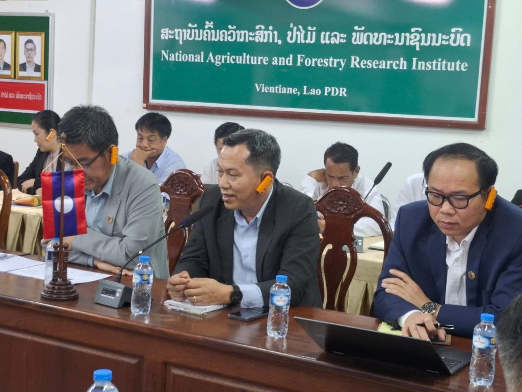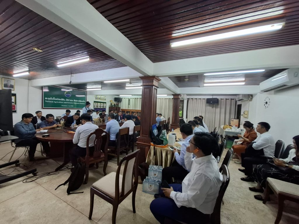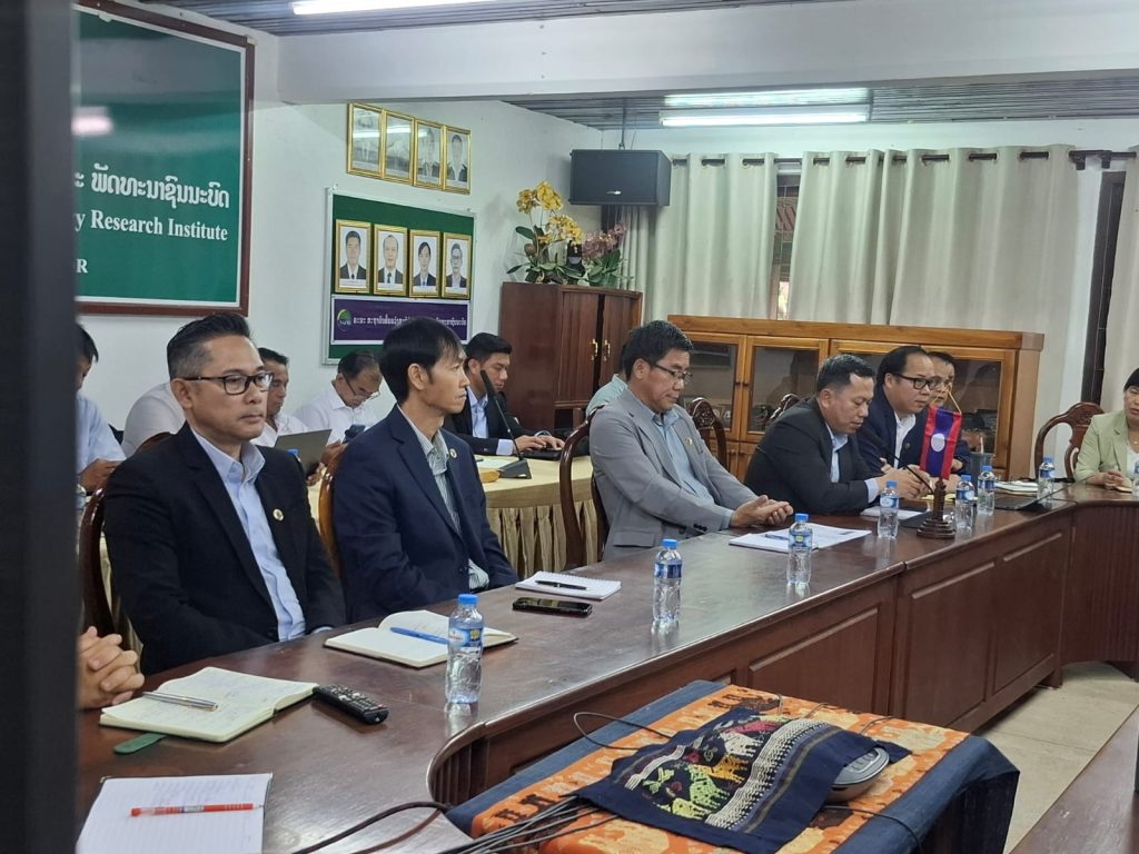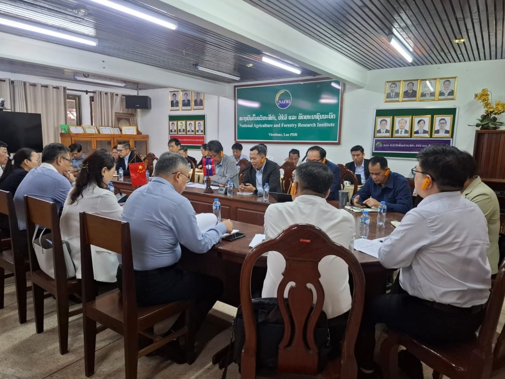 ໃນຕອນເຊົ້າຂອງວັນທີ 24 ກໍລະກົດ 2025 ໄດ້ຈັດກອງປະຊຸມປຶກສາຫາລື ການຮ່ວມມືການຄົ້ນຄວ້າພັດທະນາ ລະຫວ່າງ ສະຖາບັນຮ່ວມຈີນ-ອາຊຽນ (ສປ ຈີນ) ໂດຍການເປັນປະທານຕ່າງໜ້າຝ່າຍລາວແມ່ນ ທ່ານ ປອ. ເພັດມະນີແສງ ຊ້າງໄຊຍະສານ ຮັກສາການຫົວສະຖາບັນຄົ້ນຄວ້າກະສິກໍາ, ປ່າໄມ້ ແລະ ພັດທະນາຊົນນະບົດ (ສກປພ) ພ້ອມດ້ວຍຄະນະສະຖາບັນນອກຈາກນັ້ນມີຫົວໜ້າພະແນກ, ຫົວໜ້າສູນ, ຮອງສູນ ຂອງ 5 ສູນອອ້ມຂ້າງ ເຂົ້າຮ່ວມຈໍານວນນື່ງ, ພ້ອມນັ້ນ ຮອງຫົວຫນ້າກົມ ກົມພັດທະນາຊົນນະບົດ, ຮອງຫົວຫນ້າພະແນກຮ່ວມມືສາກົນ, ຂະແຫນ່ງ ຮ່ວມມືລາວຈີນ ຂອງກົມແຜນການ ແລະ ການຮ່ວມມື ກະຊວງກະສິກຳ ແລະ ສິງແວດລ້ອມລ້ອມເຂົ້າຮ່ວມຢ່າງພ້ອມພຽງ