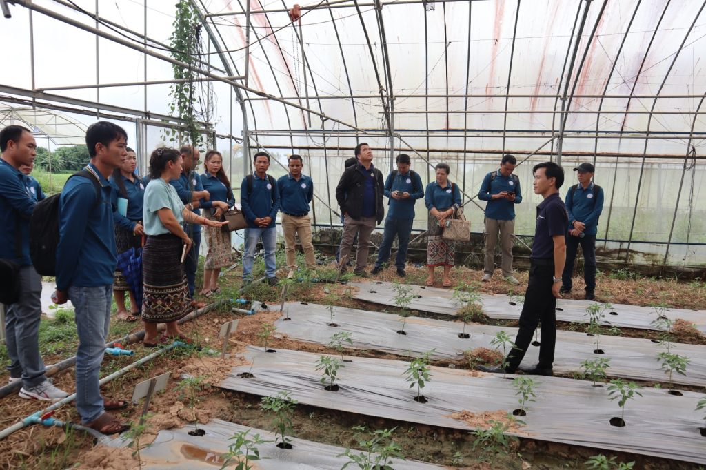 ໃນວັນທີ 28/8/2025 ທີ່ຜ່ານມາ ສູນຄົ້ນຄວ້າພືດຜັກ ແລະ ໄມ້ໃຫ້ໝາກ (ສຜໝ) ຮ່ວມກັບ ກົມສົ່ງເສີມກະສິກໍາ ແລະ ສະຫະກອນ ໄດ້ຮັບການທັດສະນະຂອງທີມງານວິຊາການຂັ້ນແຂວງ, ຂັ້ນເມືອງ ທີ່ມາຈາກ ແຂວງຫຼວງນໍ້າທາ ໂດຍການຕ້ອນຮັບຢ່າງອົບອຸ່ນຂອງ ທ່ານ ນ. ຕຸ່ງລຽນ ວິໄລພອນ ຮອງຄະນະສູນຄົ້ນຄວ້າພືດຜັກ ແລະ ໄມ້ໃຫ້ໝາກ ເຊິ່ງມີຜູ້ເຂົ້າຮ່ວມທັງໝົດ ຈໍານວນ 19 ທ່ານ ທ່ານ ແລະ ທີມງານວິຊາການຂອງສູນ (ສຜໝ) ຈໍານວນໜຶ່ງເຂົ້າຮ່ວມ ຈຸດປະສົງ: 1). ເພື່ອຢ້ຽມຢາມກິດຈະກໍາພາຍໃນສູນ 2). ເພື່ອແລກປ່ຽນ ແລະ ຖ່າຍທອດບົດຮຽນ ທາງດ້ານຜົນສໍາເລັດຂອງການຈັດຕັ້ງປະຕິບັດການຄົ້ນຄວ້າທົດລອງໂດຍສະເພາະເຕັກນິກການປູກພືດຜັກໃນເຮືອນຮົ່ມພາຍໄຕ້ການປ່ຽນແປງດິນຟ້າອາກາດ, ເຕັກນິກການປູກ, ບົວລະບັດຮັກສາ, ການຂະຫຍາຍພັນໄມ້ໃຫ້ໝາກ.