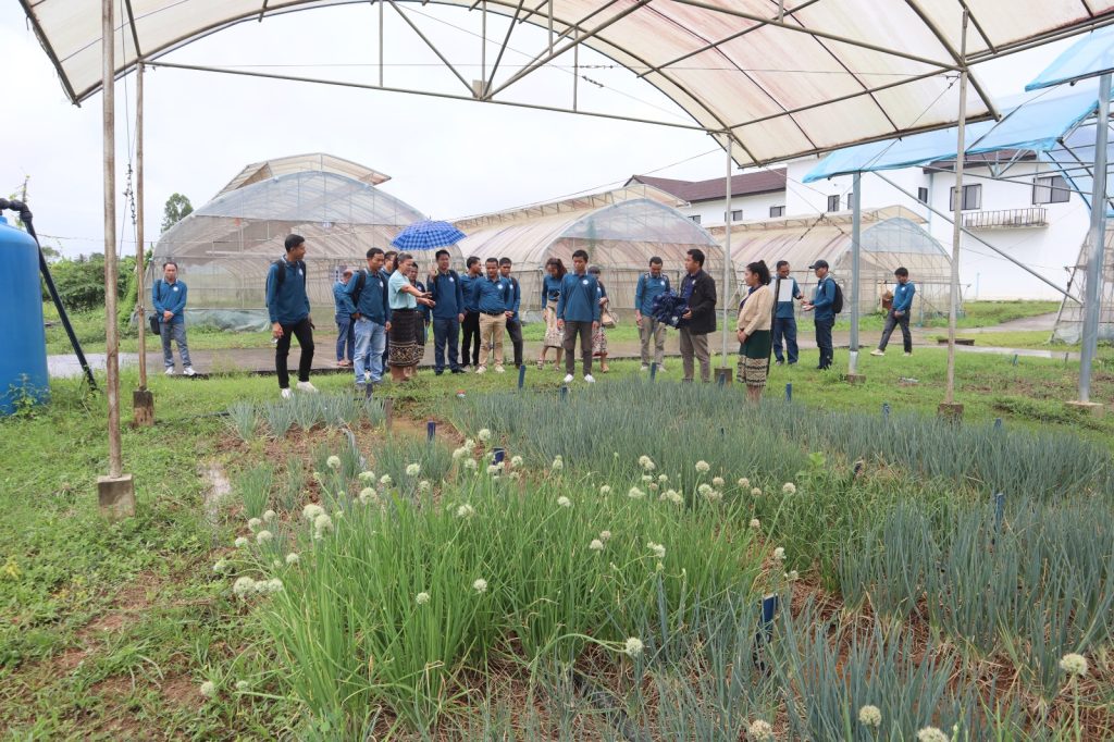 ການດໍາເນີນການລົງຢ້ຽມຢາມໃນຄັ້ງນີ້, ທີມງານຂອງສູນໄດ້ນໍາພາລົງພາກສະໜາມຕົວຈິ່ງຂອງພື້ນທີ່ອະນຸລັກ ແລະ ເຕົ້າໂຮມແນວພັນພືດຜັກ, ສ່ວນອະນຸແນວພັນໄມ້ໃຫ້ໝາກ ແລະ ຫ້ອງສ້າງເຢັນເກັບຮັກສາເມັດພັນພືດຜັກ. ການປະຕິບັດຕົວຈິງພາກສະໜາມ ທ່ານ ນ. ຕຸ່ງລຽນ ວິໄລພອນ ຮອງຄະນະສູນຄົ້ນຄວ້າພືດຜັກ ແລະ ໄມ້ໃຫ້ໝາກ. ໄດ້ນໍາສະເໜີປະຫວັດຄວາມເປັນມາ ແລະ ພາລະບົດບາດ ຂອງສູນຄົ້ນຄວ້າພືດຜັກ ແລະ ໄມ້ໃຫ້ໝາກ ແລະ ຜົນສໍາເລັດຂອງການຈັດຕັ້ງປະຕິບັດການຄົ້ນຄວ້າທົດລອງຂອງສູນ ເຊັ່ນ: ການຄົ້ນຄວ້າທາງດ້ານເຕັກນິກການປູກ, ການຄົ້ນຄວ້າທາງດ້ານແນວພັນ ແລະ ການຂະຫຍາຍພັນພືດຜັກ ແລະ ໄມ້ໃຫ້ໝາກ ພ້ອມທັງເຕັກນິກການປ້ອງກັນພືດ ແລະ ເຕັກນິກຫຼັງການເກັບກ່ຽວ; ເຊິ່ງໄດ້ເນັ້ນໃສ່ວຽກງານການຄົ້ນຄວ້າທີ່ກ່ຽວຂ້ອງຕໍ່ກັບສະພາບການປ່ຽນແປງດິນຟ້າອາກາດ ຈາກນັ້ນ, ກໍ່ໄດ້ແນະເຕັກນິກການປູກ, ບົວລະບັດຮັກສາ, ການຂະຫຍາຍພັນໄມ້ໃຫ້ໝາກ ນອກຈາກນັ້ນຍັງໄດ້ລົງຢ້ຽມຢາມເບິ່ງພື້ນທີ່ຂອງສູນຄົ້ນຄວ້າພືດຜັກ ແລະ ໄມ້ໃຫ້ໝາກ, ບ້ານຫາດດອກແກ້ວ, ເມືອງຫາດຊາຍຟອງ, ນະຄອນຫຼວງວຽງຈັນ.