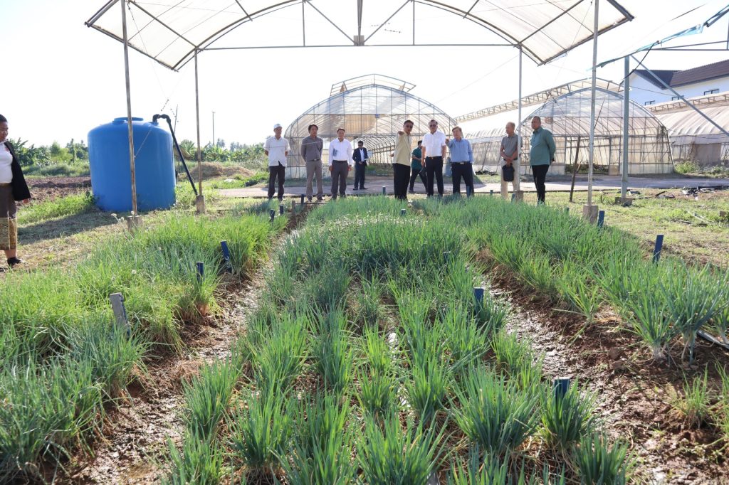 ໃນຕອນບ່າຍຂອງວັນທີ 21/11/2025 ທີ່ຜ່ານມານີ້ ທີ່ສູນຄົ້ນຄວ້າພືດຜັກ ແລະ ໄມ້ໃຫ້ໝາກ (ສຜໝ) ໄດ້ຮັບກຽດຕ້ອນຮັບ ທ່ານ ອານົງສອນ ພົມມະຈັນ ຄະນະປະຈໍາພັກ ກະຊວງກະສິກໍາ ແລະ ສິ່ງແວດລ້ອມ (ຫົວໜ້າ ກົມສົ່ງເສີມກະສິກໍາ ແລະ ສະຫະກອນ) ພ້ອມດ້ວຍທີມງານ ຂອງສູນສາທິດເຕັກນິກກະສິກໍາ ເຊິ່ງມີຜູ້ເຂົ້າຮ່ວມທັງໝົດ ຈໍານວນ 18 ຄົນ ການລົງມາຢ້ຽມຢາມ ແລະ ຕິດຕາມກິດຈະກໍາພາຍໃນ (ສຜໝ) ໃນຄັ້ງນີ້ແມ່ນໄດ້ຮັບການຕ້ອນຮັບຢ່າງອົບອຸ່ນ ແລະ ເປັນກັນເອງ ຂອງທ່ານ ປ.ອ ທອງຄູນ ສີສະໄພທອງ ຫົວໜ້າສູນຄົ້ນຄວ້າພືດຜັກ ແລະ ໄມ້ໃຫ້ໝາກ ພ້ອມດ້ວຍນັກວິຊາການຂອງ (ສຜໝ) ຈໍານວນໜຶ່ງເຂົ້າຮ່ວມ. ຈຸດປະສົງ: 1). ເພື່ອຢ້ຽມຢາມທາງດ້ານການດໍາເນີນກິດຈະກໍາພາຍໃນສູນ ແລະ ຜົນສໍາເລັດຂອງ ສູນຄົ້ນຄວ້າພືດຜັກ ແລະ ໄມ້ໃຫ້ໝາກ ໂດຍສະເພາະແມ່ນກິດຈະກໍາການຈັດຕັ້ງປະຕິບັດການຄົ້ນຄວ້າທົດລອງ, ການຄົ້ນຄວ້າທາງດ້ານການປັບຕົວເຂົ້າກັບການປ່ຽນແປງດິນຟ້າອາກາດຂອງການຜະລິດພືດຜັກ ແລະ ເຕັກນິກການຂະຫຍາຍພັນໄມ້ໃຫ້ໝາກ, ການປ້ອງກັນ-ກໍາຈັດພະຍາດ ແລະ ແມງໄມ້ສັດຕູພືດ ພ້ອມທັງການແປຮູບຜະລິດຕະພັນກະສິກໍາ.